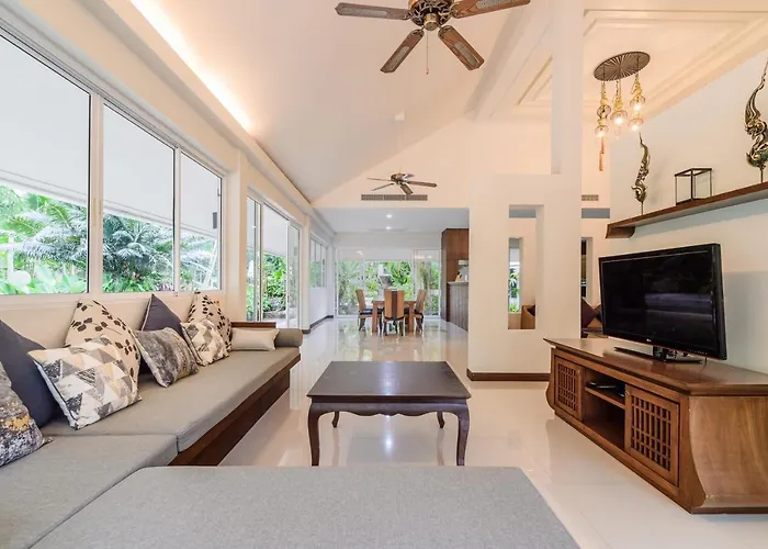 La villaestá situada en un distrito comercial, a 10 minutos en coche de la Playa Nopparat Thara.